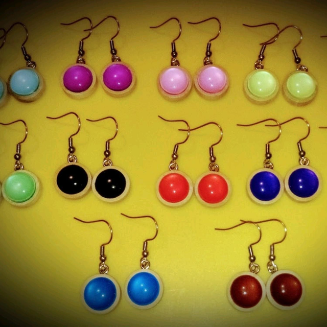 boucles d'oreilles bois et verre couleur au choix